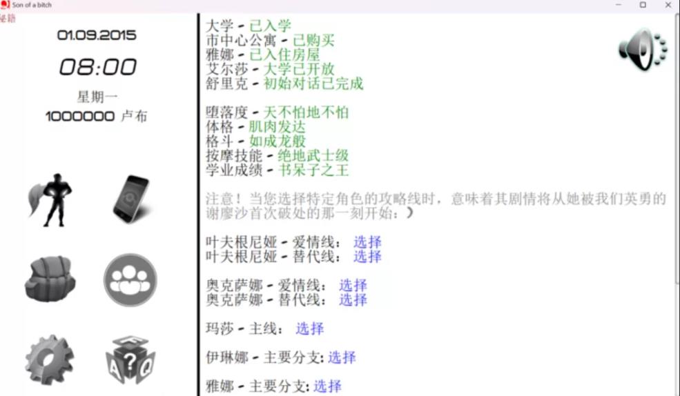 游戏的主角是一个刚从学校毕业的年轻人,他必须选择一种生活方式。你写他的历史。他和妈妈和姐姐住在一起。游戏世界中有很多女孩和女人!