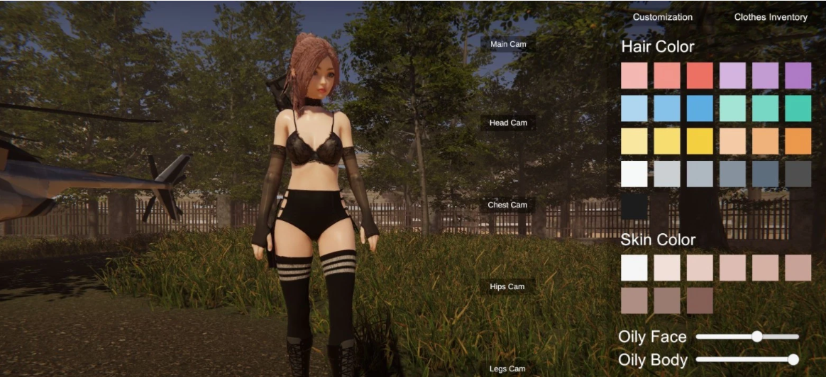 有【简易捏人】系统,可以调节身材/发型/颜色/欧派大小等等