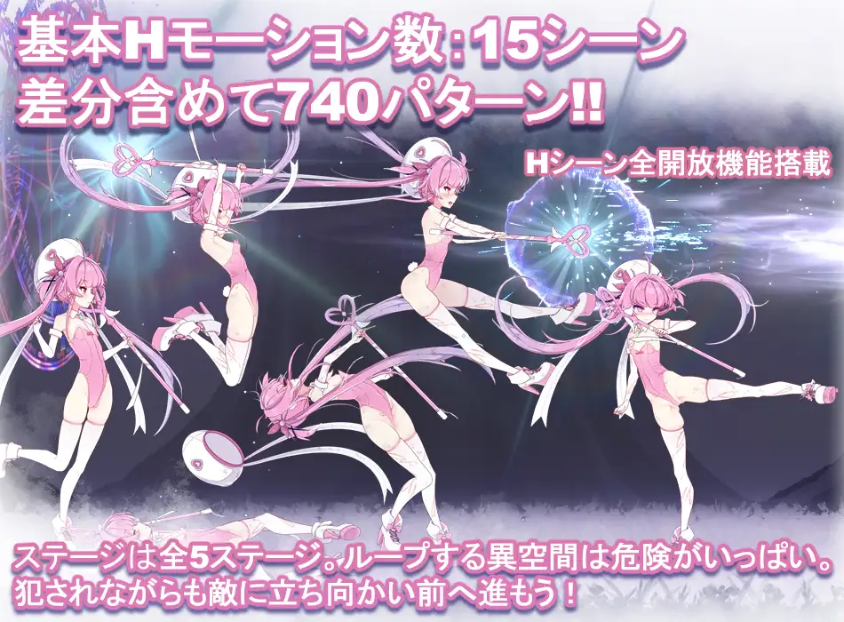 这是一款以魔法少女为主角的2D动作游戏,玩家需要在循环的异次元空间中战斗并逃脱。