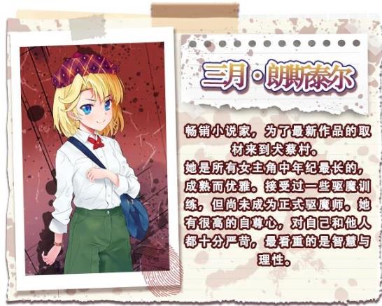 在这部视觉小说中,你将扮演悠木,与驱魔师协会派来的伊早濑荒鹿一起调查这个本应被掩埋的诡异村庄。