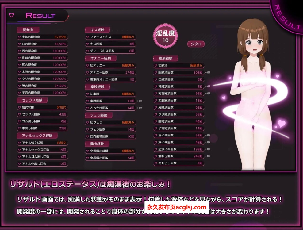 在结果界面确认当天触摸过的部位、痴○的内容吧!