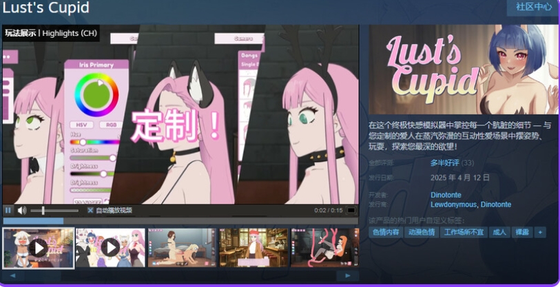 欲望丘比特是一款模拟游戏,您可以在多个诱人的性爱场景中自由操控您的角色,并为您和您的伴侣提供广泛的定制选项,助您打造自己的梦想组合。