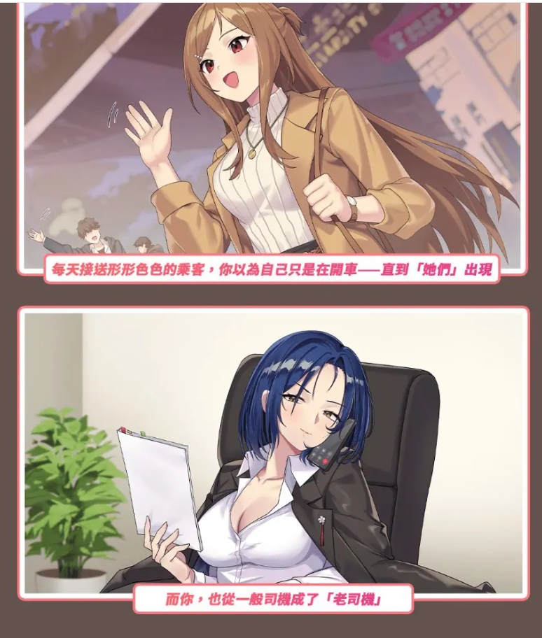 – 打开叫车软件,接受不同时间段、区域的订单;每位乘客自带独立支线与多段对话。