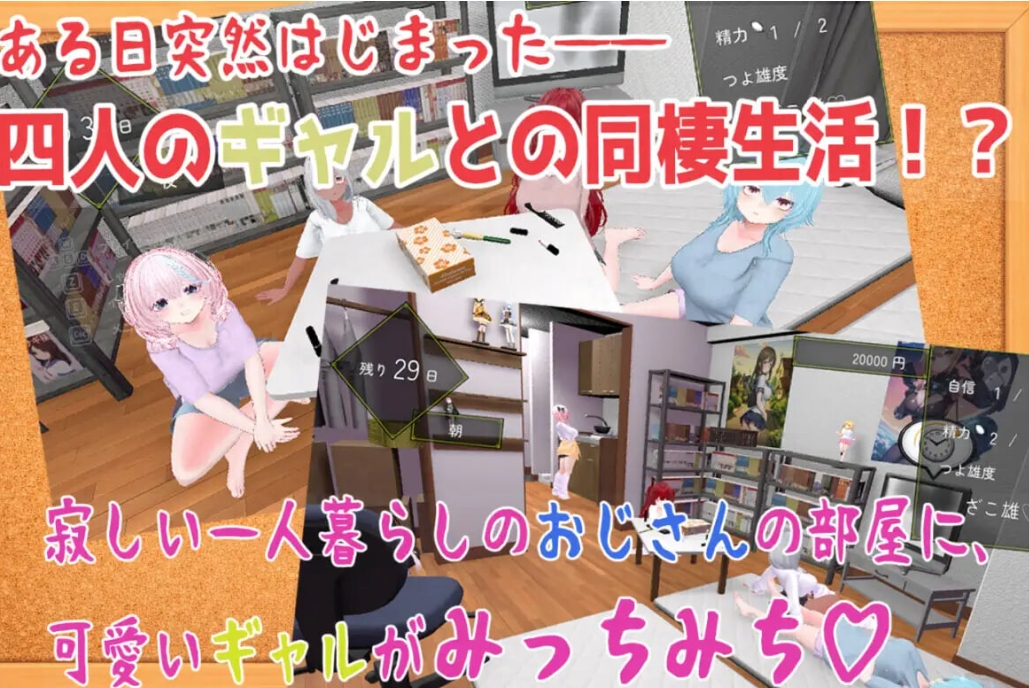 被四位辣妹包围着做爱,打工,挑战面试,与辣妹们加深交流后再做爱,同时找回“自信”,在与辣妹们共同度过的30天期限内进行游玩的游戏。